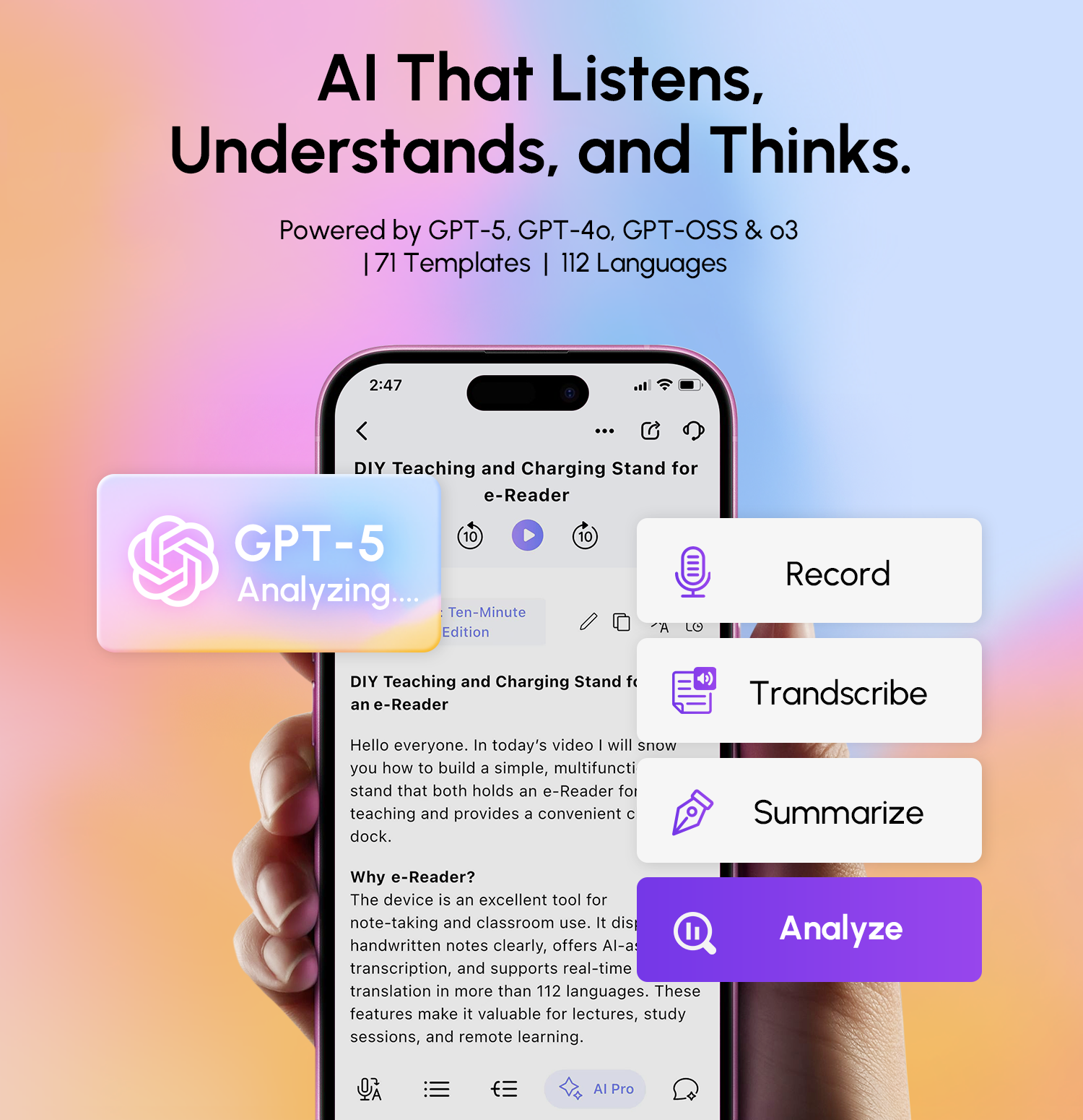 · Comprehend: Transcribe in 112 languages + label speakers, and generate briefs in minutes.